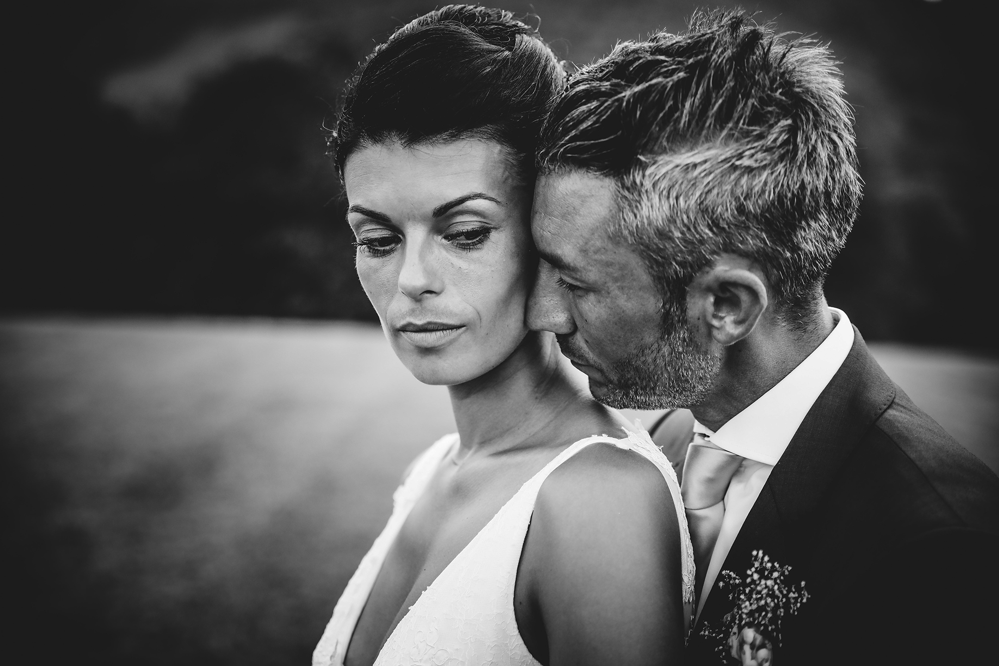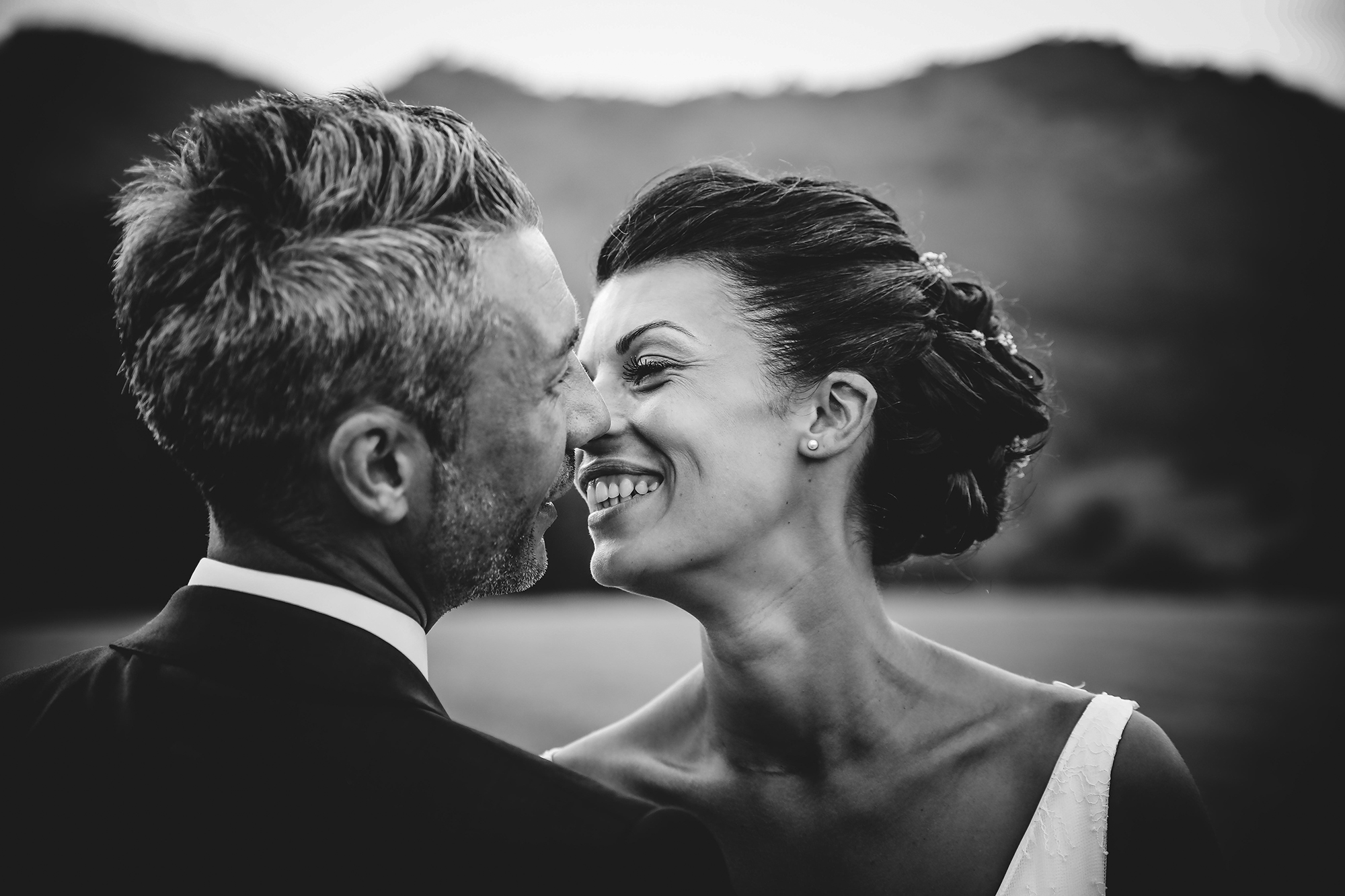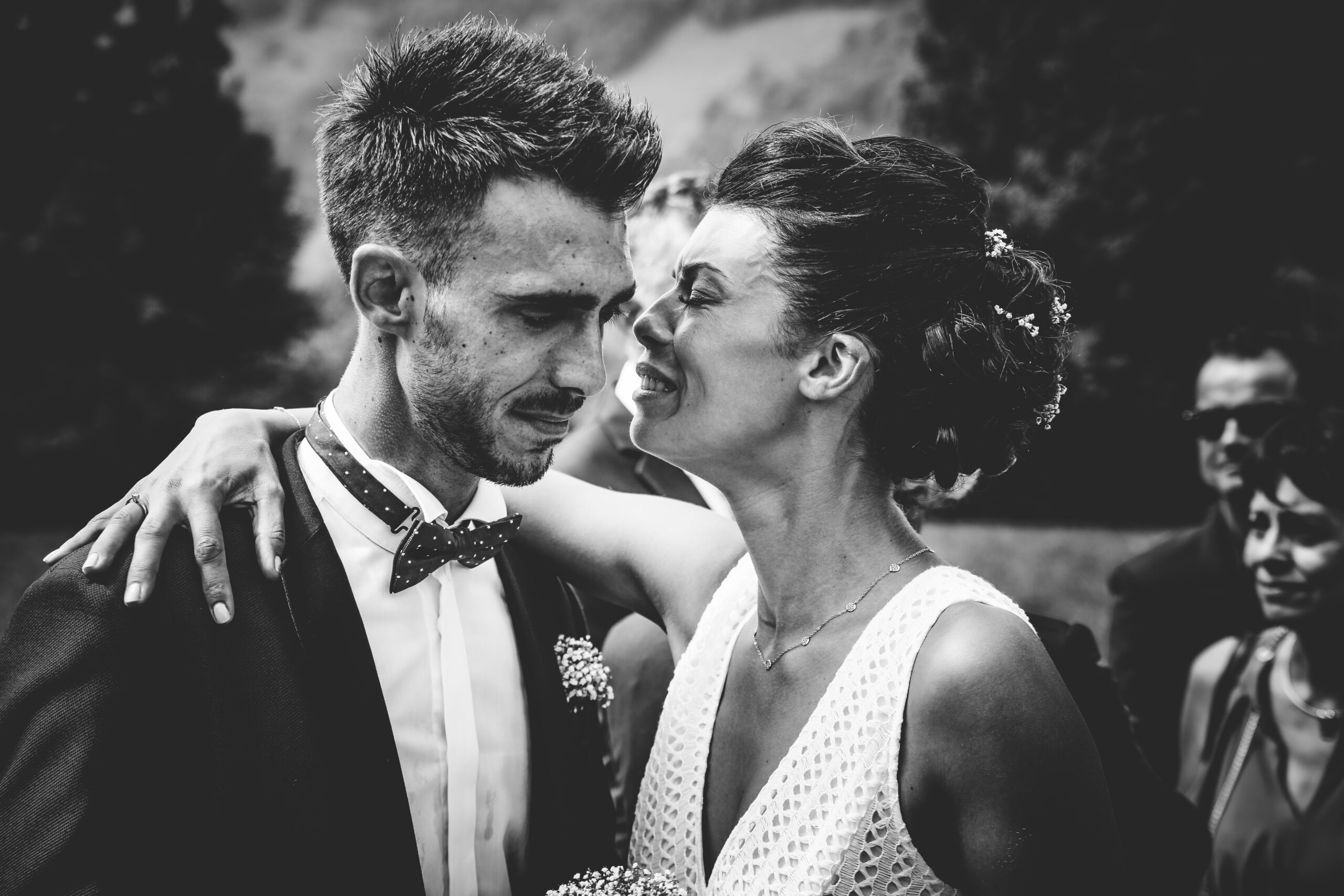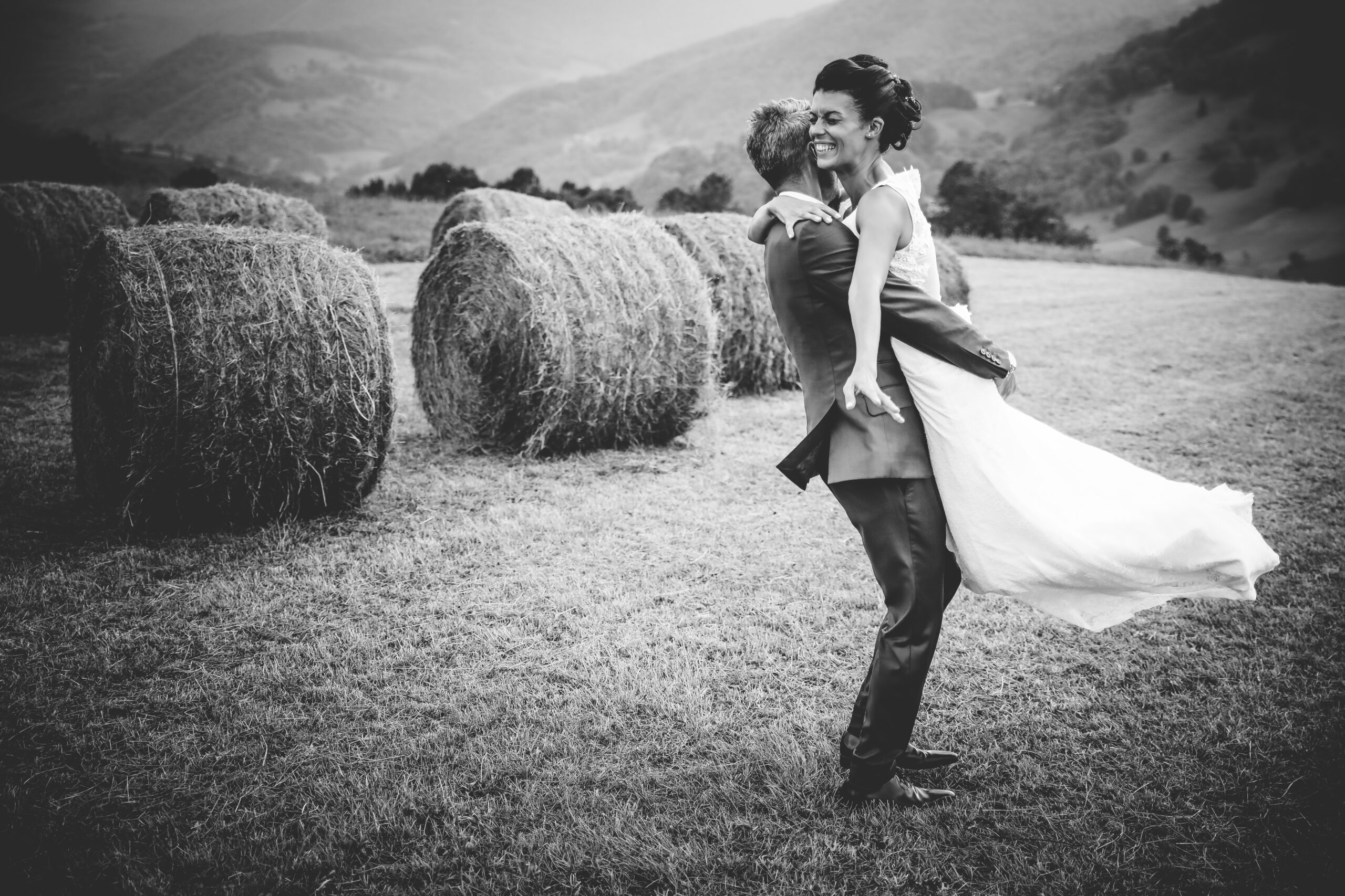 Entre les cérémonies et la fête, Julien Laurent Georges emmena les jeunes mariés pour un shooting romantique face aux sommets pyrénéens. Dans ce décor majestueux, leurs silhouettes élégantes se détachaient sur l’horizon, liant à jamais leur amour à la terre qui avait vu naître Marie-Alexie.
